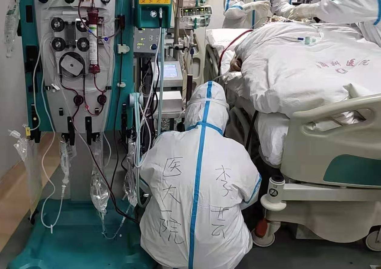 宋说:“当时整个病房里有10多个危重病人。我们可以使用的一些抢救设备,包括ECMO、无创呼吸机等生命支持仪器,都在运行;另外,基本上10个以上的患者都是俯卧位治疗,基本上不管是清醒还是昏迷的患者。”
