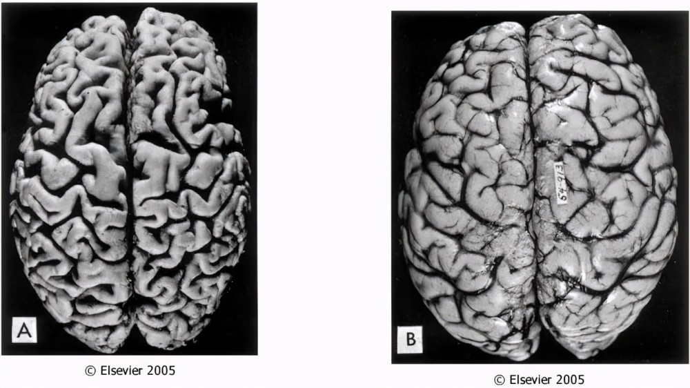 (左:萎缩脑/右:正常脑)