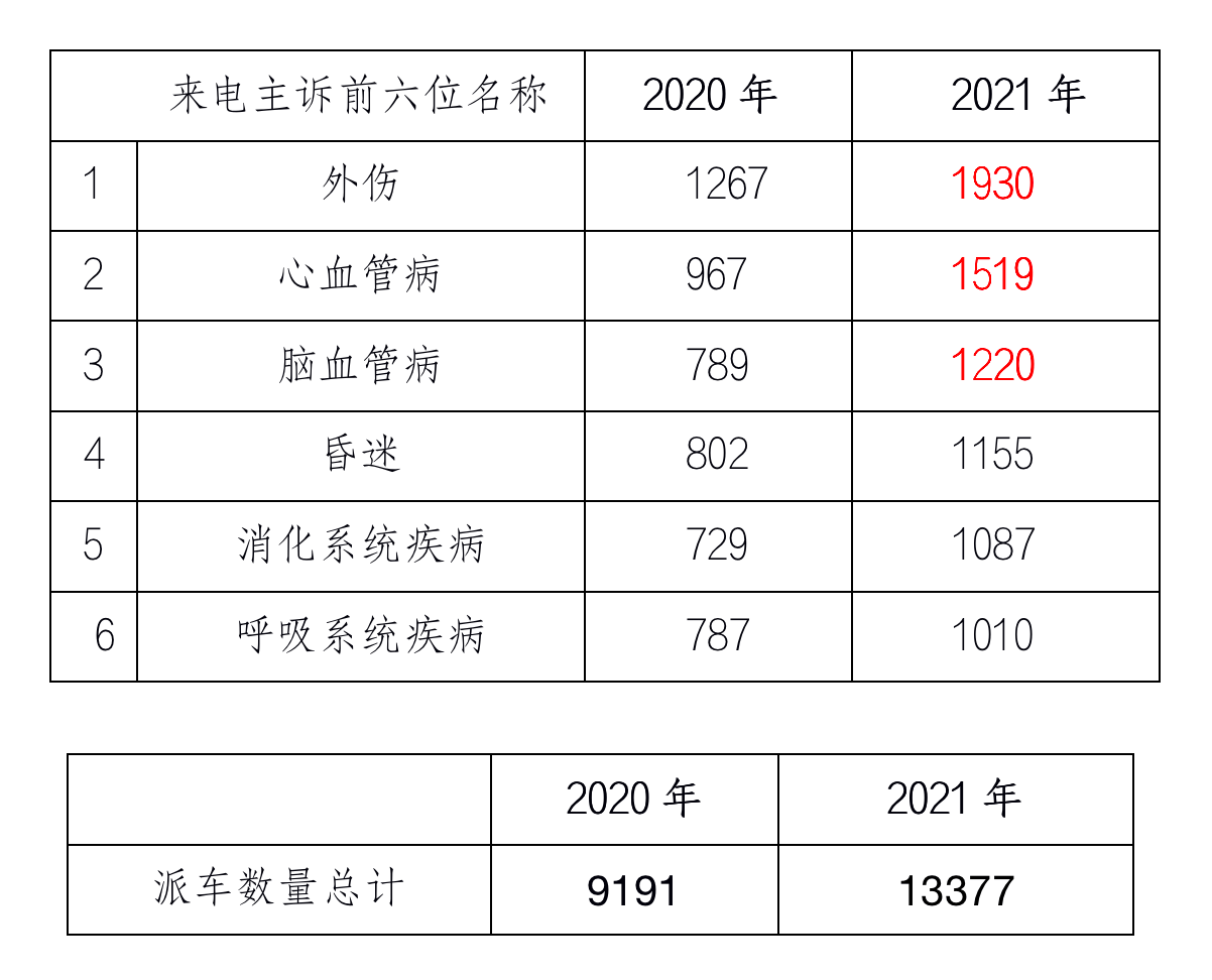 2021年4月26日至5月3日,北京应急中心共出动应急车辆13377辆。按电话的主要投诉来看,精神创伤1930例,排名第一;心血管疾病1519例,排名第二;脑血管病1220例,排名第三;